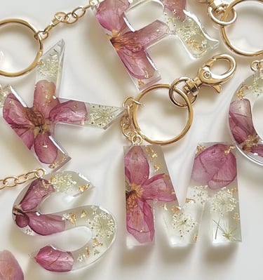 Técnica con flores secas ( llavero de letras)