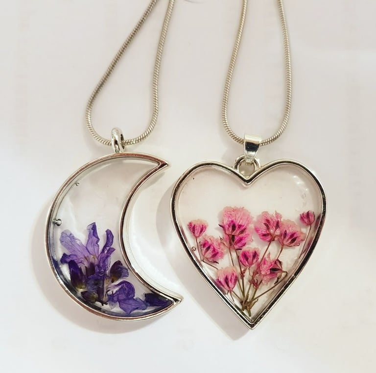 Técnica de joyería con biseles (aretes con encapsulado de flores, dije de elefante, aretes en forma de estrella, collar de corazón)