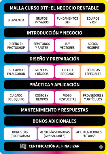 En este programa te mostramos cómo resolver los problemas más comunes del DTF para que avances con seguridad desde el primer día.